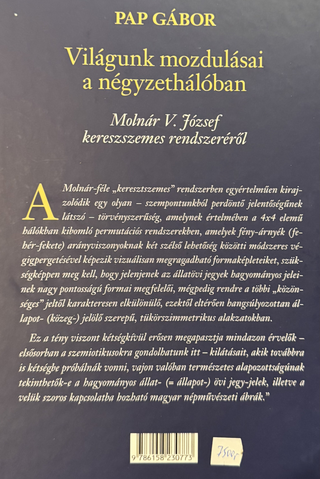 VILÁGUNK MOZDULÁSAI A NÉGYZETHÁLÓBAN. - Molnár V. József “keresztszemes” rendszeréről