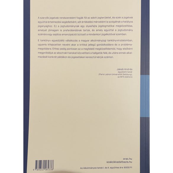 - Komplex megközelítés: A két kötet átfogóan tárgyalja az alkotmányos jog különböző aspektusait, beleértve az alapelveket, intézményeket és joggyakorlatokat.